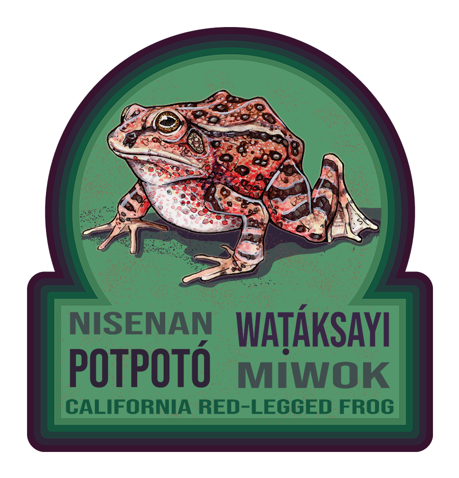 The Black Widow and California Toad pin designs; and the Bat, Candy, Mushroom, California Red-Legged Frog, and Sierran Treefrog sticker art were drawn by Skye Anderson (© Shingle Springs Band of Miwok Indians). The Cat, Moon, Pumpkin, and Tarantula sticker art are adapted from public domain or open source-licensed clipart provided by Creazilla.