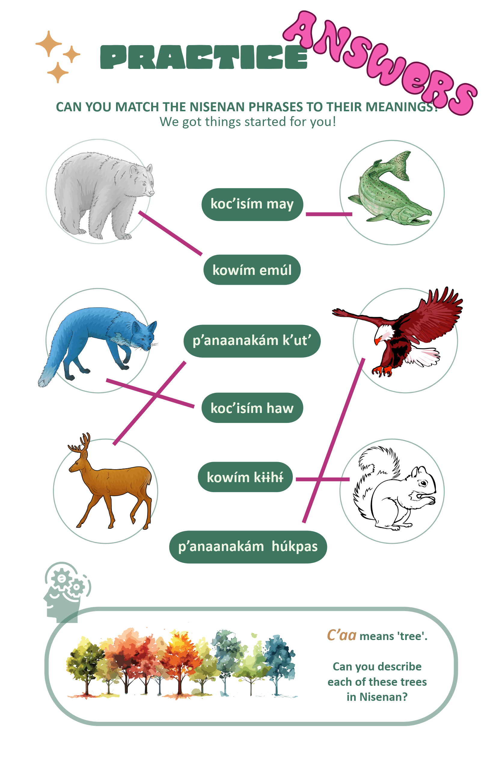 Valley Nisenan and Southern Hill Nisenan are very similar to one another in their words and grammar. Where these dialects differ, we typically share Valley Nisenan language. Where Valley Nisenan speakers differ, we typically share language from Pamela Adams. However except where we explicitly note these differences, most of the language that we share is the same in both of these dialects.